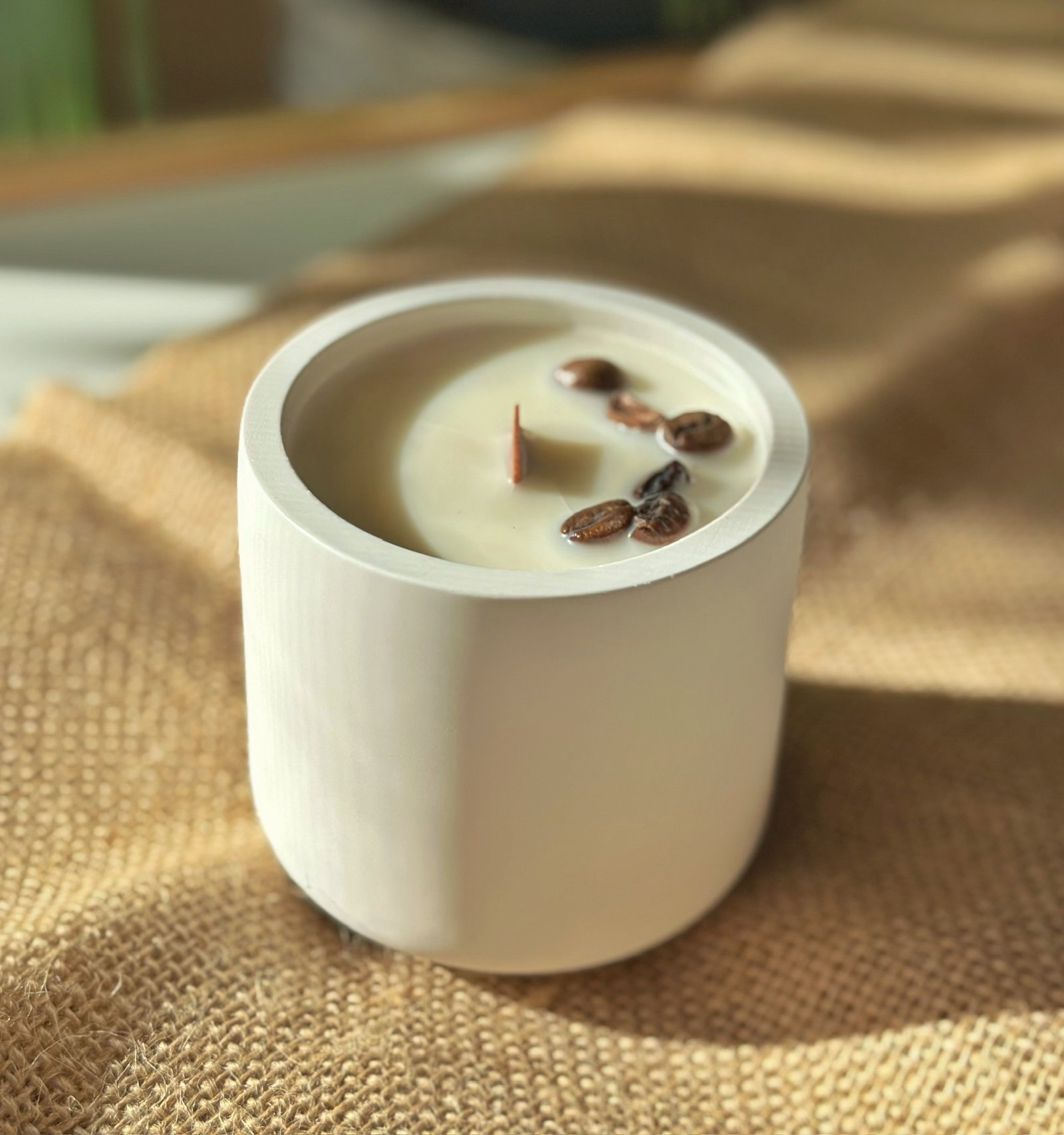 Vela 100% cera de soja ecológica, certificada por BIOINSPECTA, lo que garantiza que proviene de cultivos sostenibles, libres de químicos y transgénicos. Fragancia de café tostado, con cuerpo, carácter y calidez.